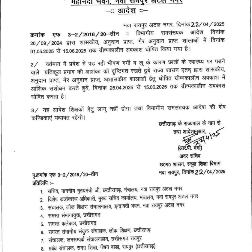 रायपुर, छत्तीसगढ़। दिनाँक: 22 अप्रैल 2025 –