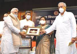 रायपुर : राज्यपाल अनुसुईया उइके आज छत्तीसगढ़ विधानसभा के डॉ. श्यामा प्रसाद मुखर्जी प्रेक्षागृह में आयोजित ’’उत्कृष्टता अलंकरण समारोह’’ में शामिल हुईं। इस अवसर पर विधानसभा अध्यक्ष डॉ. चरणदास महंत, मुख्यमंत्री भूपेश बघेल, मंत्री, संसदीय सचिव एवं विधायकगण उपस्थित थे।